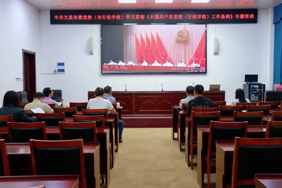 为深入贯彻落实党中央关于党校工作的决策部署,切实把思想和行动统一到党中央决策部署上来,9月25日下午,中共文昌市委党校(市行政学校)开展学习贯彻《中国共产党党校(行政学院)工作条例》(以下简称《条例》)专题培训。市委党校常务副校长孙人策、副校长梁坚磐以及全体教职工参加。