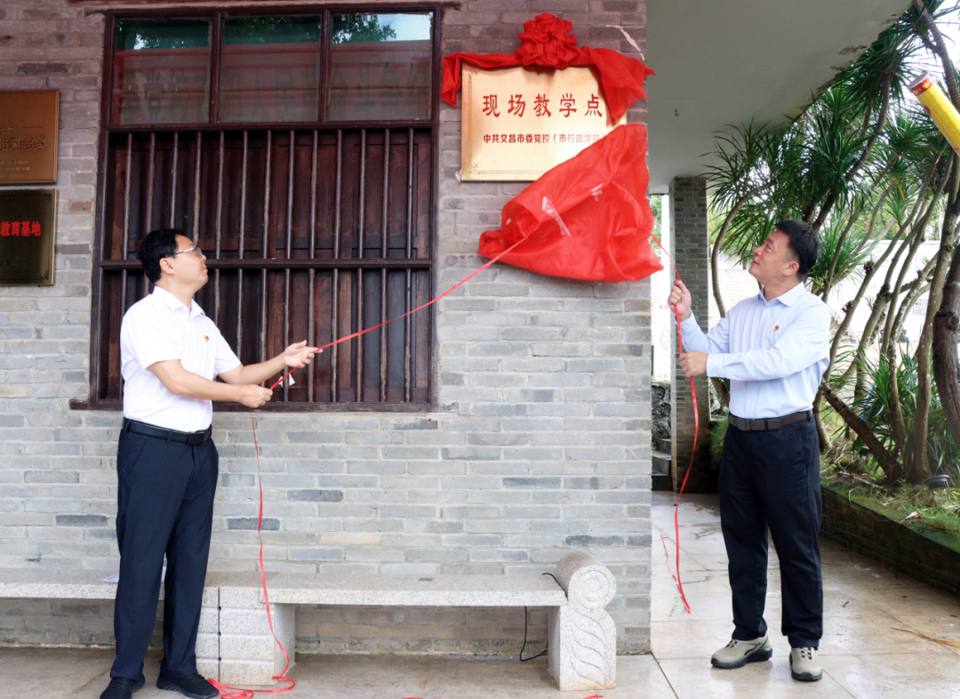 刘小刚强调,此次揭牌是整合本地红色教育资源、拓宽干部培训渠道的重要举措,对于教育引导广大干部铭记革命历史、传承斗争精神、筑牢信仰之基、提升履职能力具有十分重要的意义。要通过其所承载的革命历史与英雄事迹,作为传承红色基因的实践阵地,把红色资源作为教育引导广大学员弘扬爱国主义精神的“活教材”,激励党员干部不忘初心、牢记使命;要紧密围绕市委、市政府中心工作和重大决策部署,搭建起服务发展大局的“新载体”,让红色资源优势转化为干部教育培训优势,有效服务于我市干部队伍能力建设和经济社会发展需要;要积极探索党建与党校工作融合点,赋能激活乡村振兴“强引擎”,促进优质教育资源向基层延伸、向乡村辐射,推动党建与乡村振兴深度融合,为文昌打造“党建促乡村振兴”品牌注入源头活水。