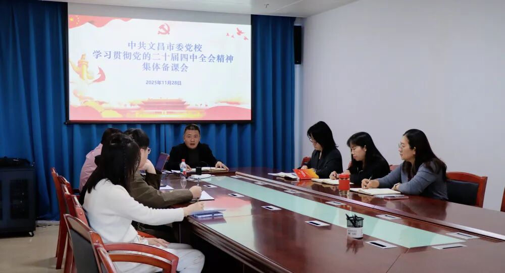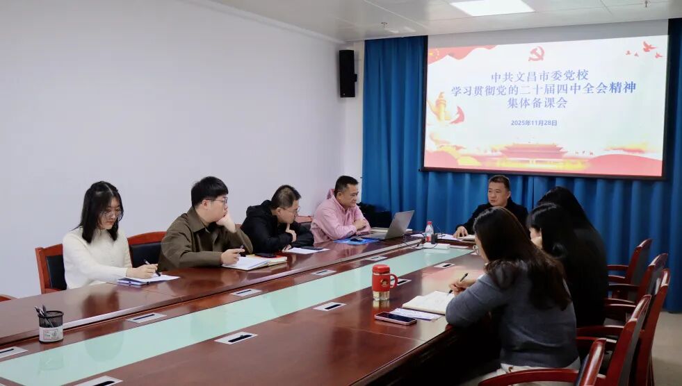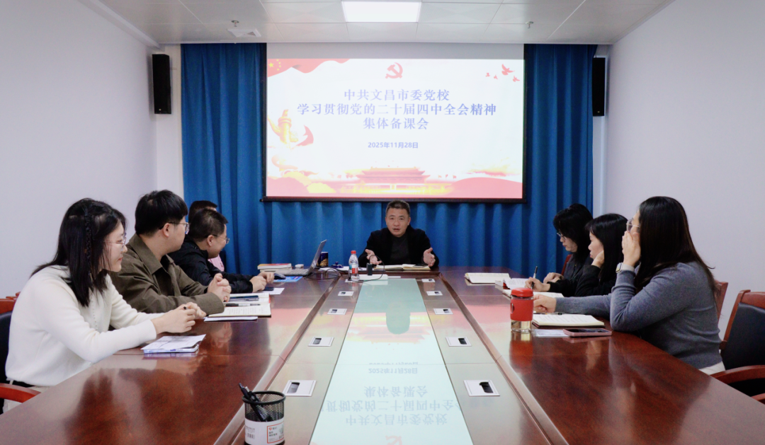 为深入学习贯彻党的二十届四中全会精神,准确把握全会精神的核心要义和精神实质,11月28日,中共文昌市委党校召开学习贯彻党的二十届四中全会精神集体备课会。市委党校常务副校长孙人策主持备课会并提出要求,副校长梁坚磐参加并指导集体备课会。